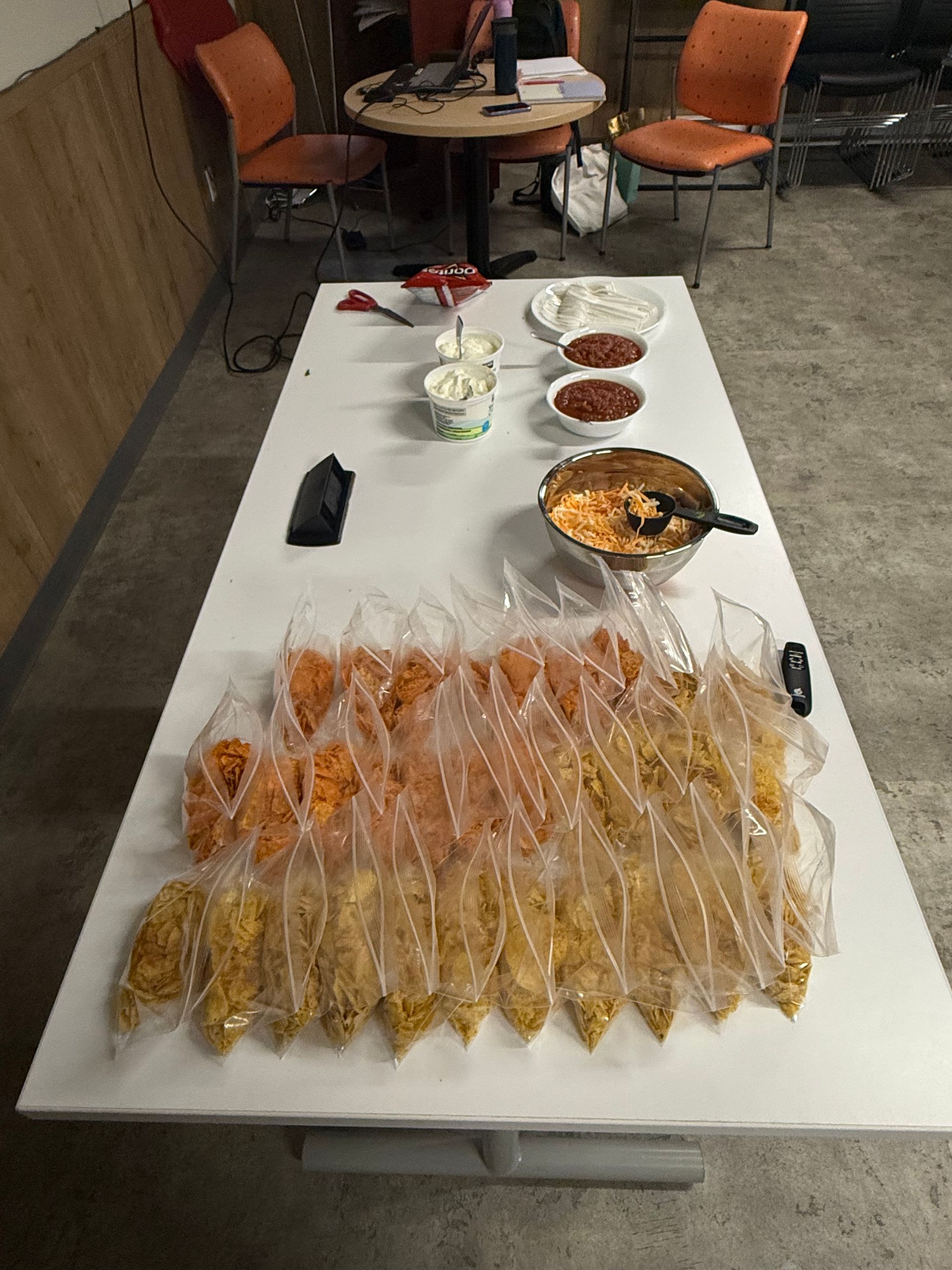 During the session, the students learned and demonstrated how to make "Taco in a Bag." They practiced identifying and using the ingredients in real time. Afterward, everyone enjoyed a snack and celebrated their achievements together.