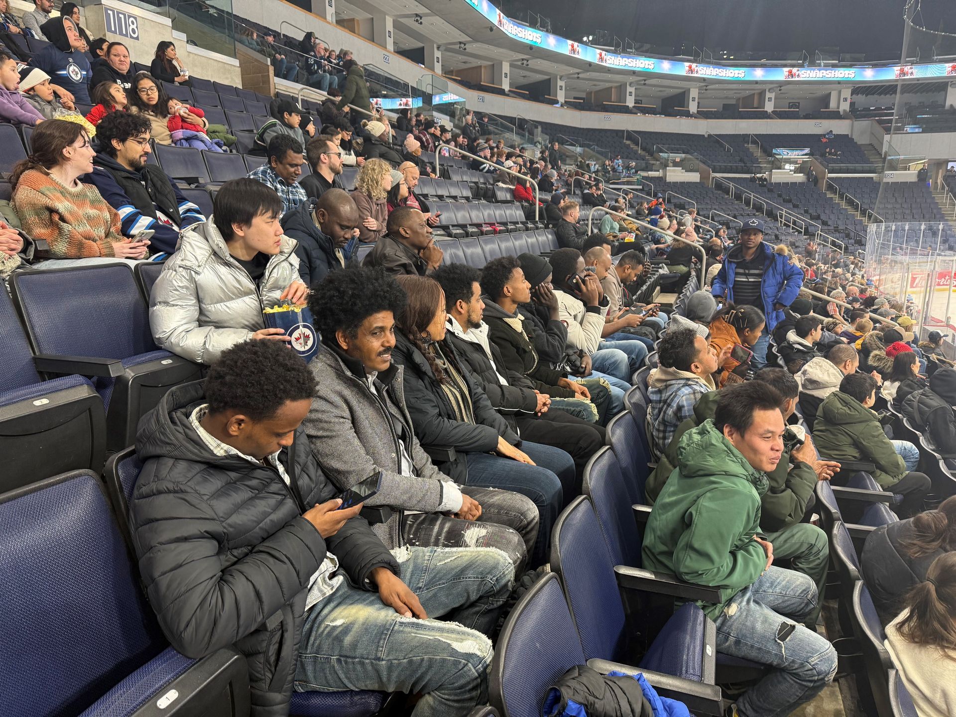 On February 12, 2025 the Volunteer Program took a large group of newcomers to the Manitoba Moose hockey game. They had an unforgettable experience at their first hockey game in Canada and really appreciated the opportunity which was made possible by Welcome Place and True North Sports and Entertainment!